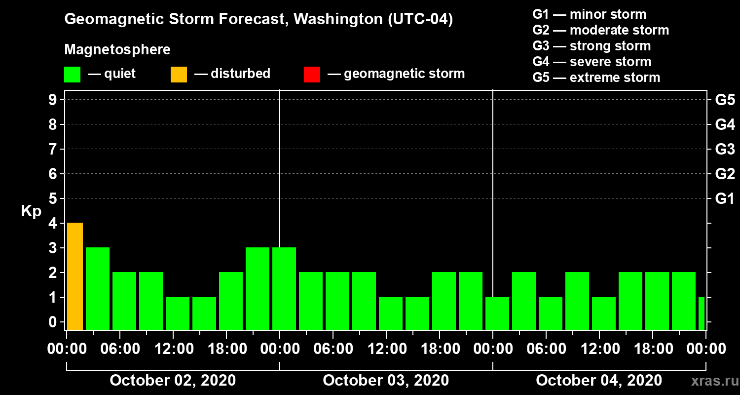 Geomagnetic storm forecast in Washington for Oct 02, 2020