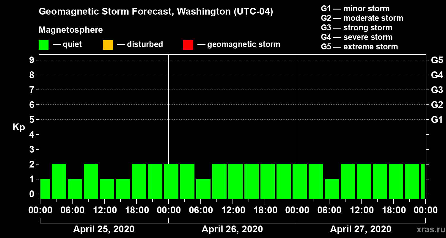 Geomagnetic storm forecast in Washington for Apr 25, 2020