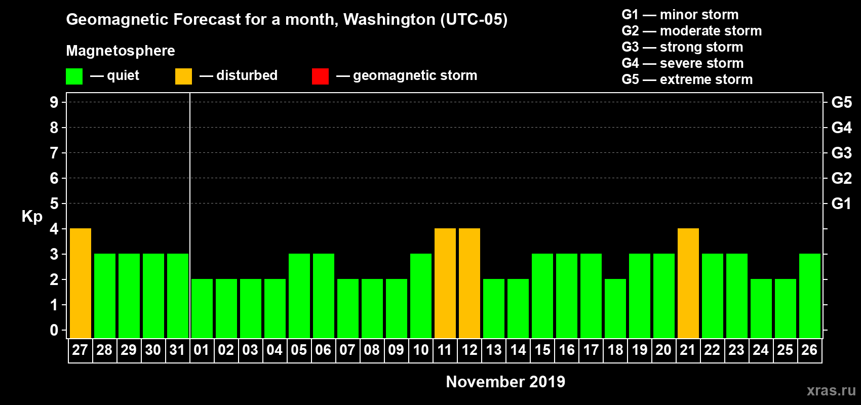 Geomagnetic storm forecast in Washington for Oct 27, 2019