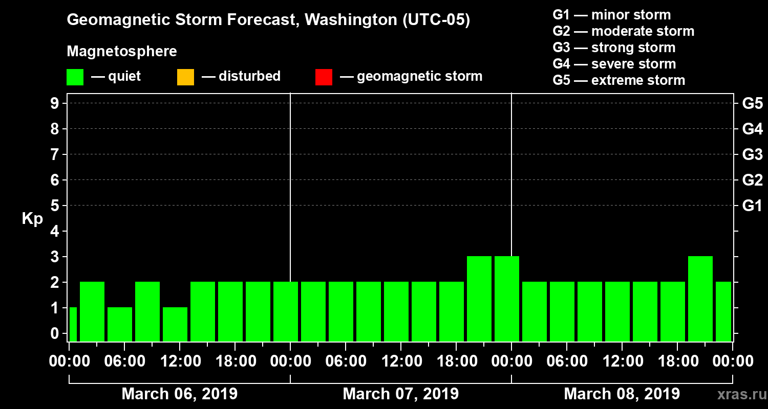 Geomagnetic storm forecast in Washington for Mar 06, 2019