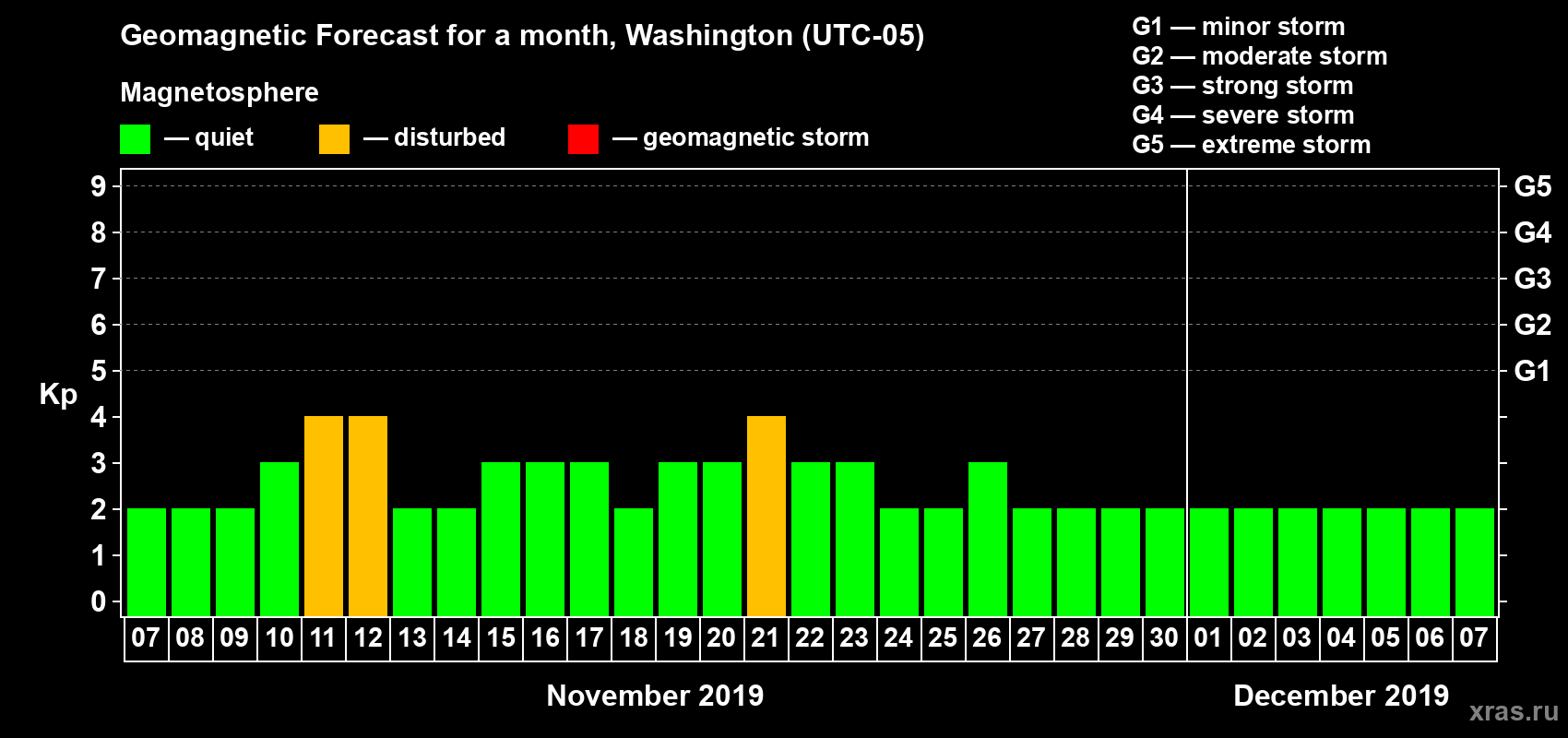 Geomagnetic storm forecast in Washington for Nov 07, 2019
