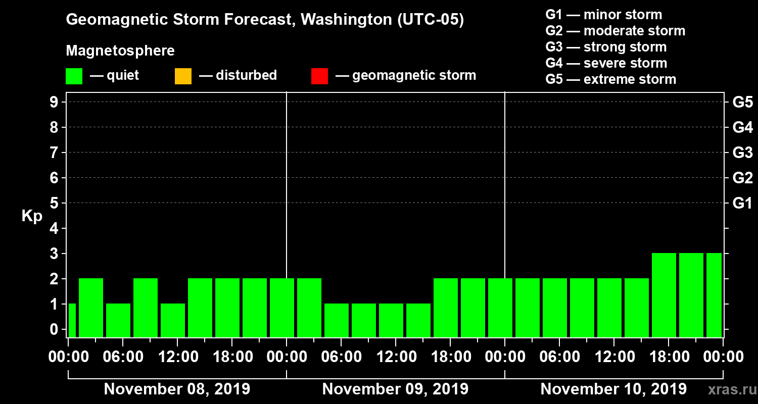 Geomagnetic storm forecast in Washington for Nov 08, 2019