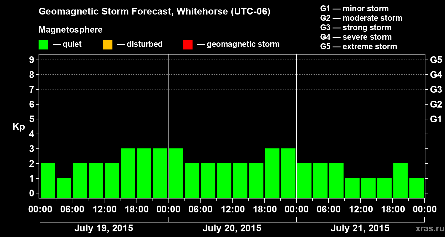 Geomagnetic storm forecast in Whitehorse for Jul 19, 2015