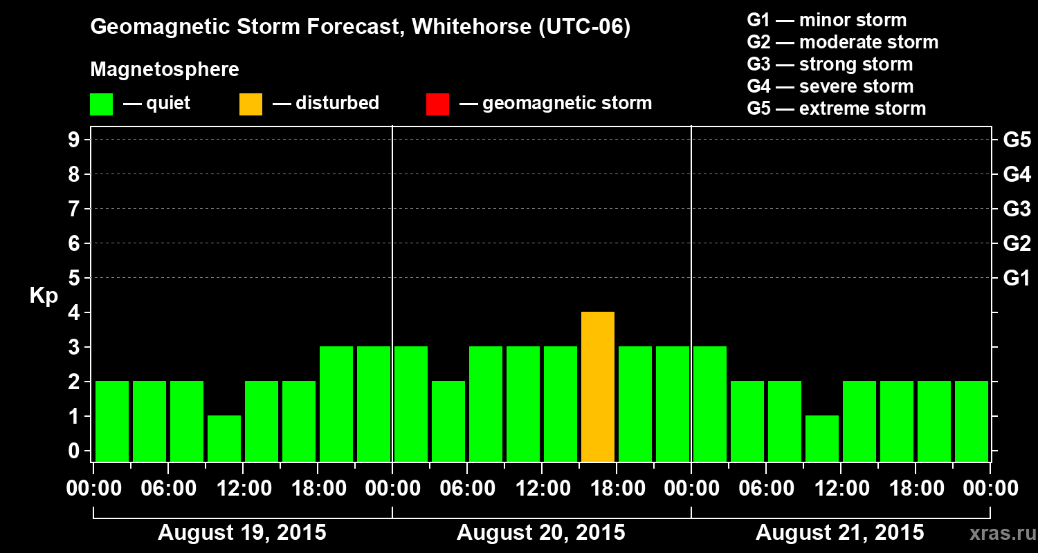 Geomagnetic storm forecast in Whitehorse for Aug 19, 2015