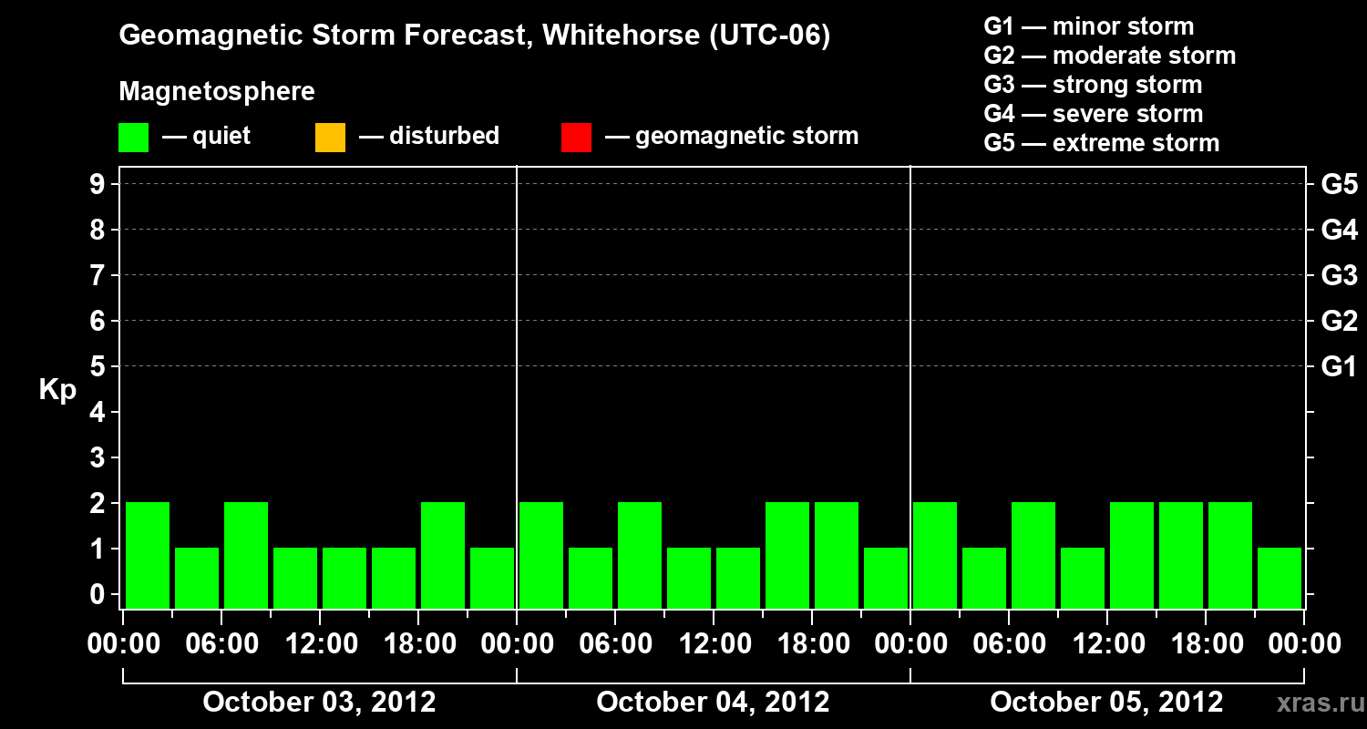 Geomagnetic storm forecast in Whitehorse for Oct 03, 2012