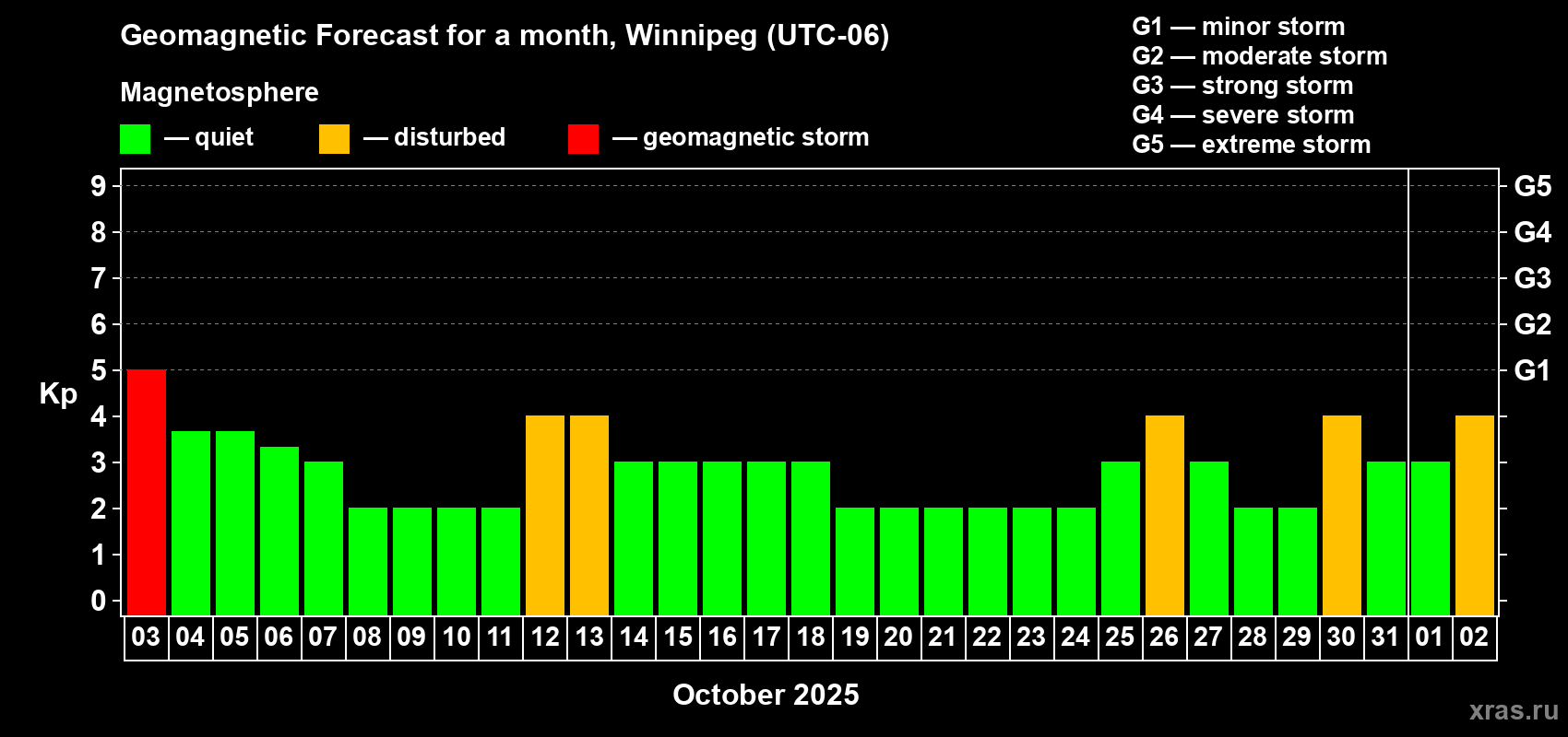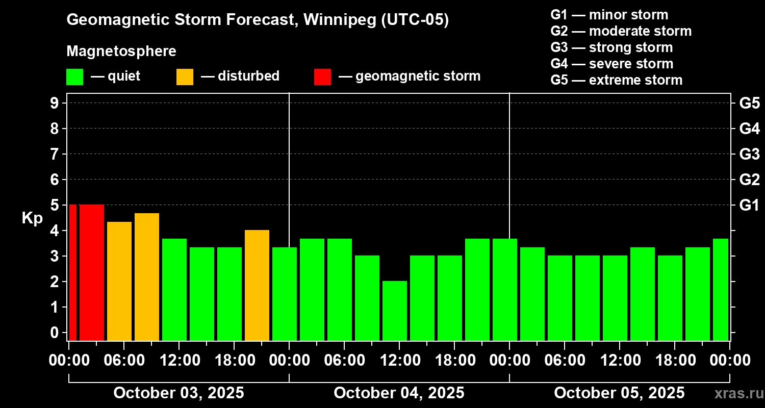 Geomagnetic storm forecast in Winnipeg for Oct 03, 2025