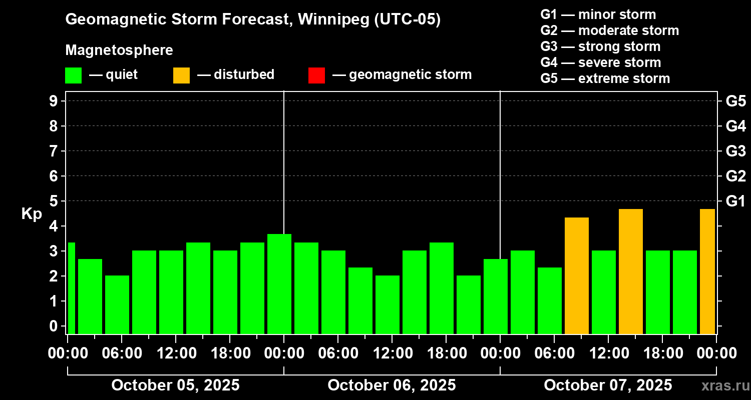 Geomagnetic storm forecast in Winnipeg for Oct 05, 2025