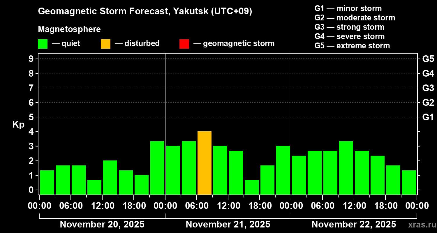 Geomagnetic storm forecast in Yakutsk for Nov 20, 2025