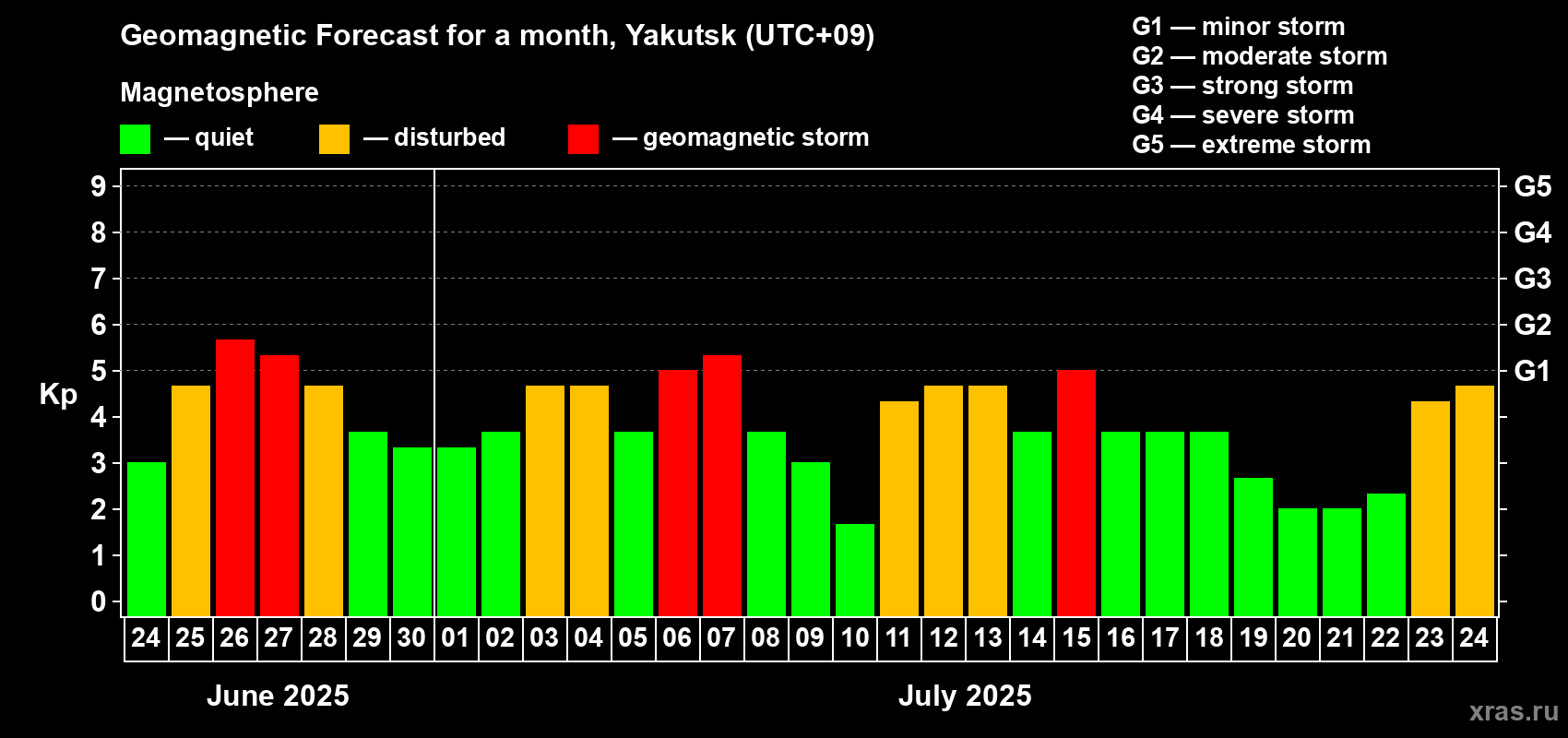 Geomagnetic storm forecast in Yakutsk for Jun 24, 2025