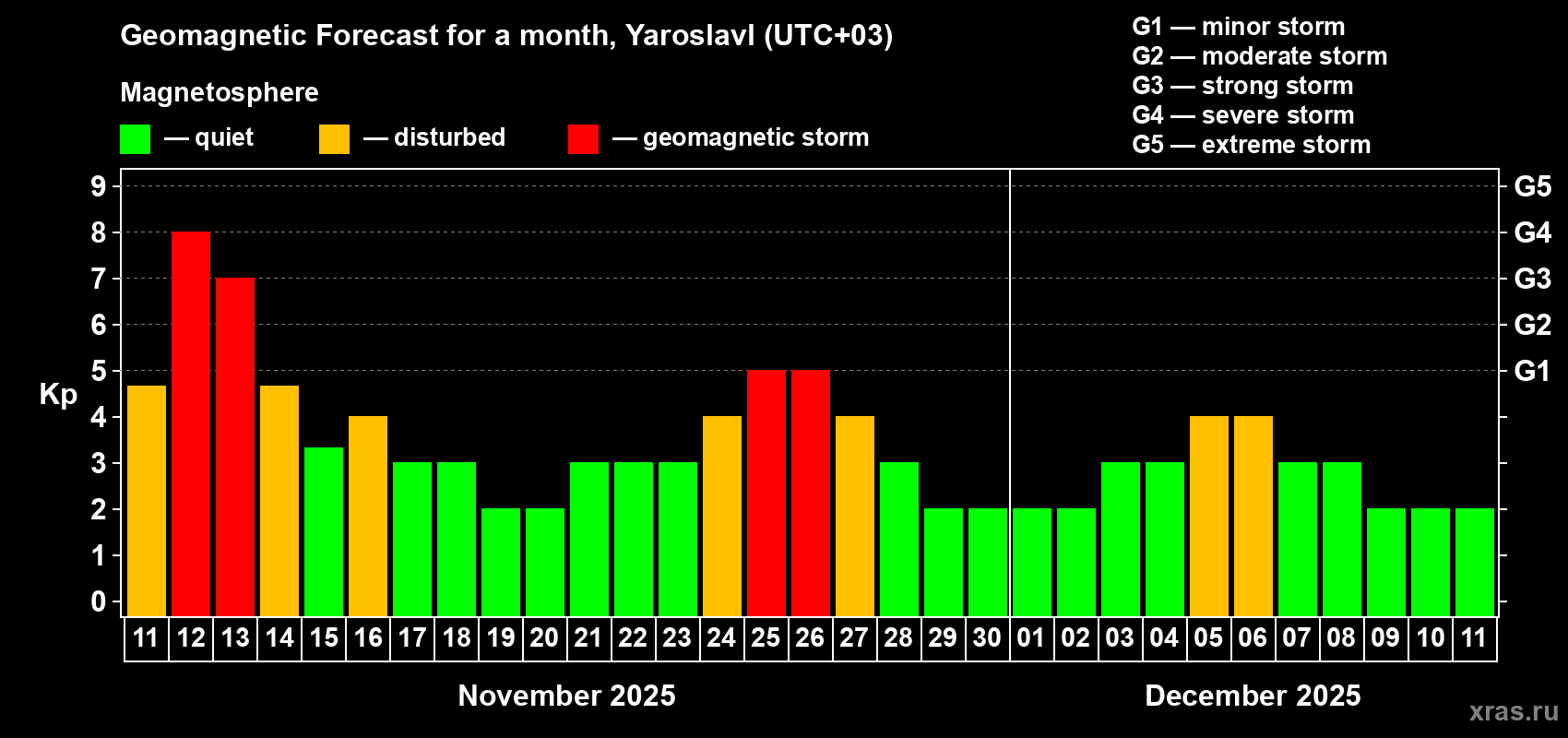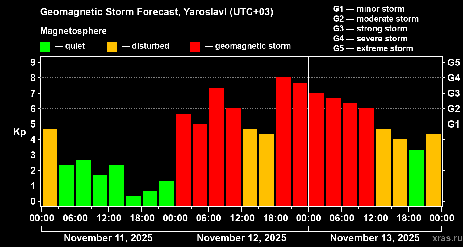 Geomagnetic storm forecast in Yaroslavl for Nov 11, 2025