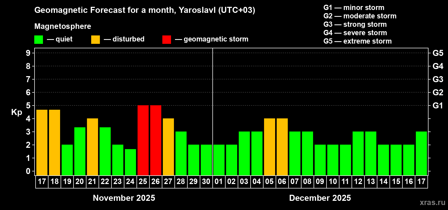 Geomagnetic storm forecast in Yaroslavl for Nov 17, 2025