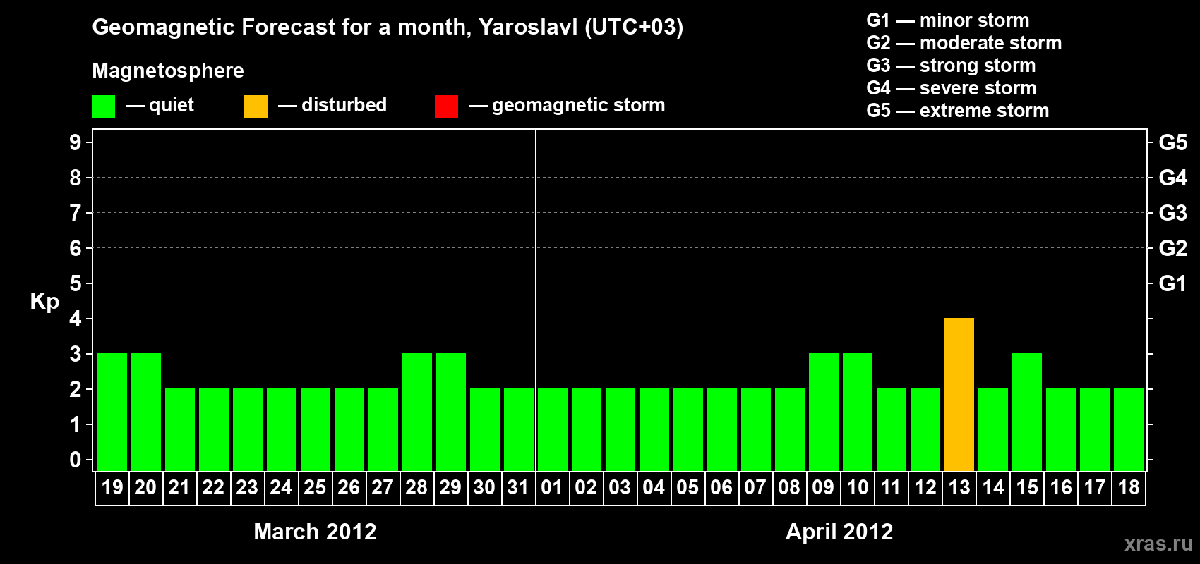 Geomagnetic activity forecast in Yaroslavl — Mar 19, 2012