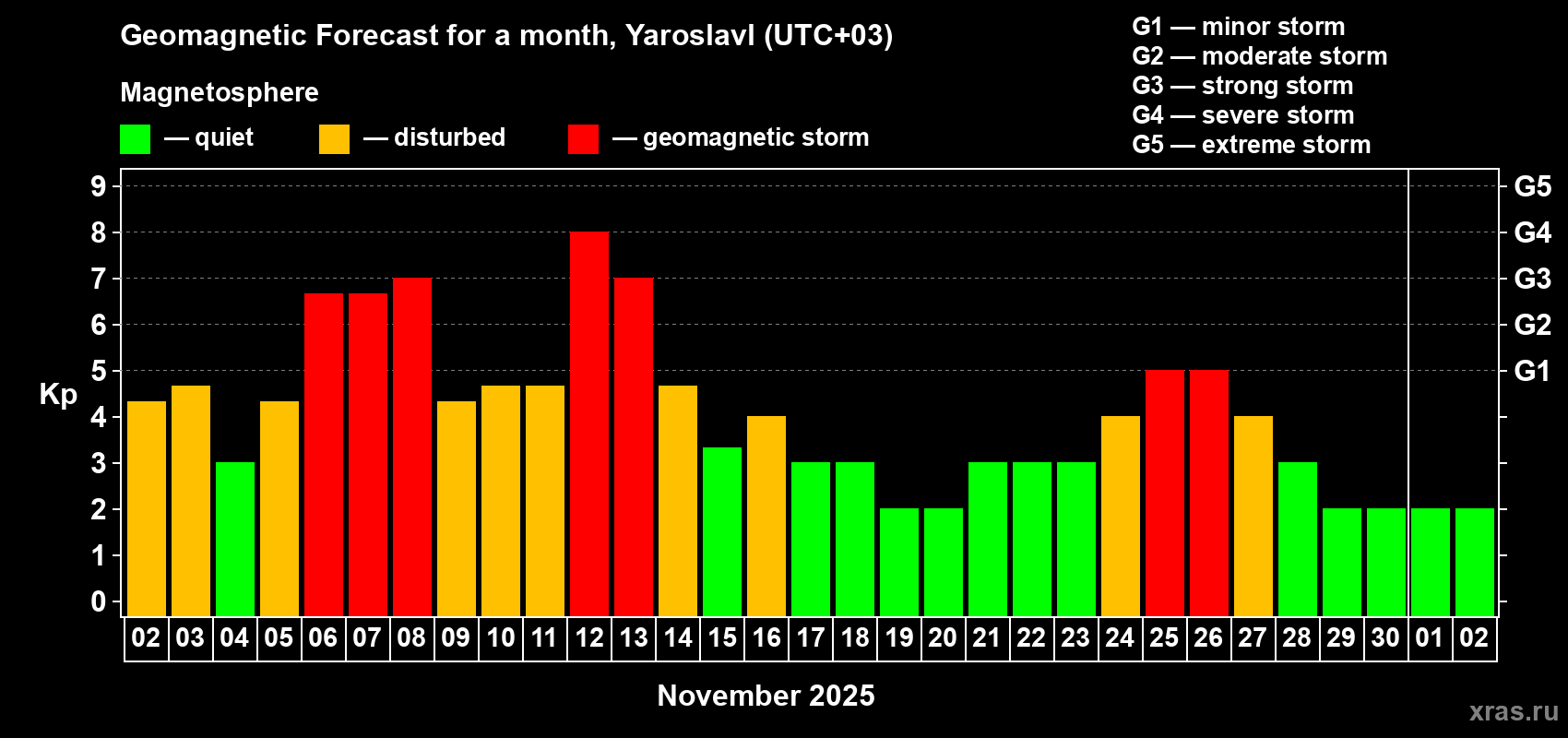 Geomagnetic storm forecast in Yaroslavl for Nov 02, 2025