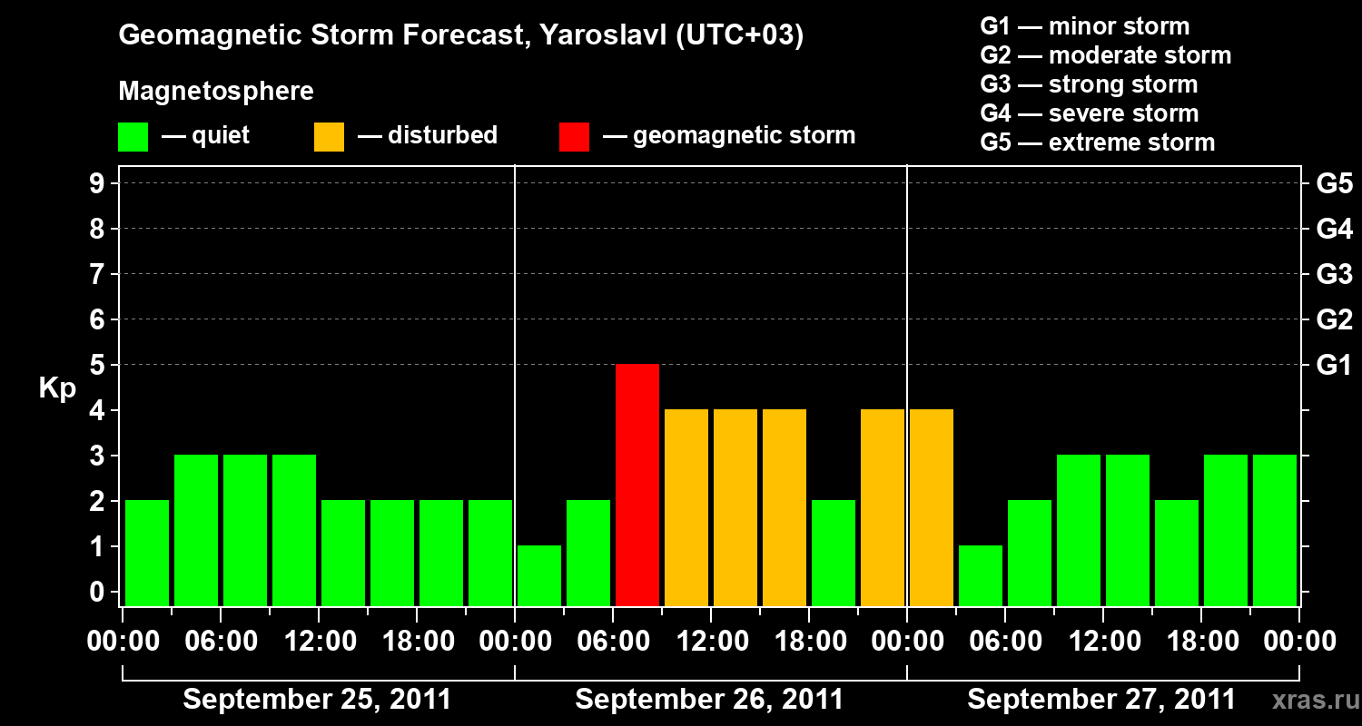 Geomagnetic storm forecast in Yaroslavl for Sep 25, 2011
