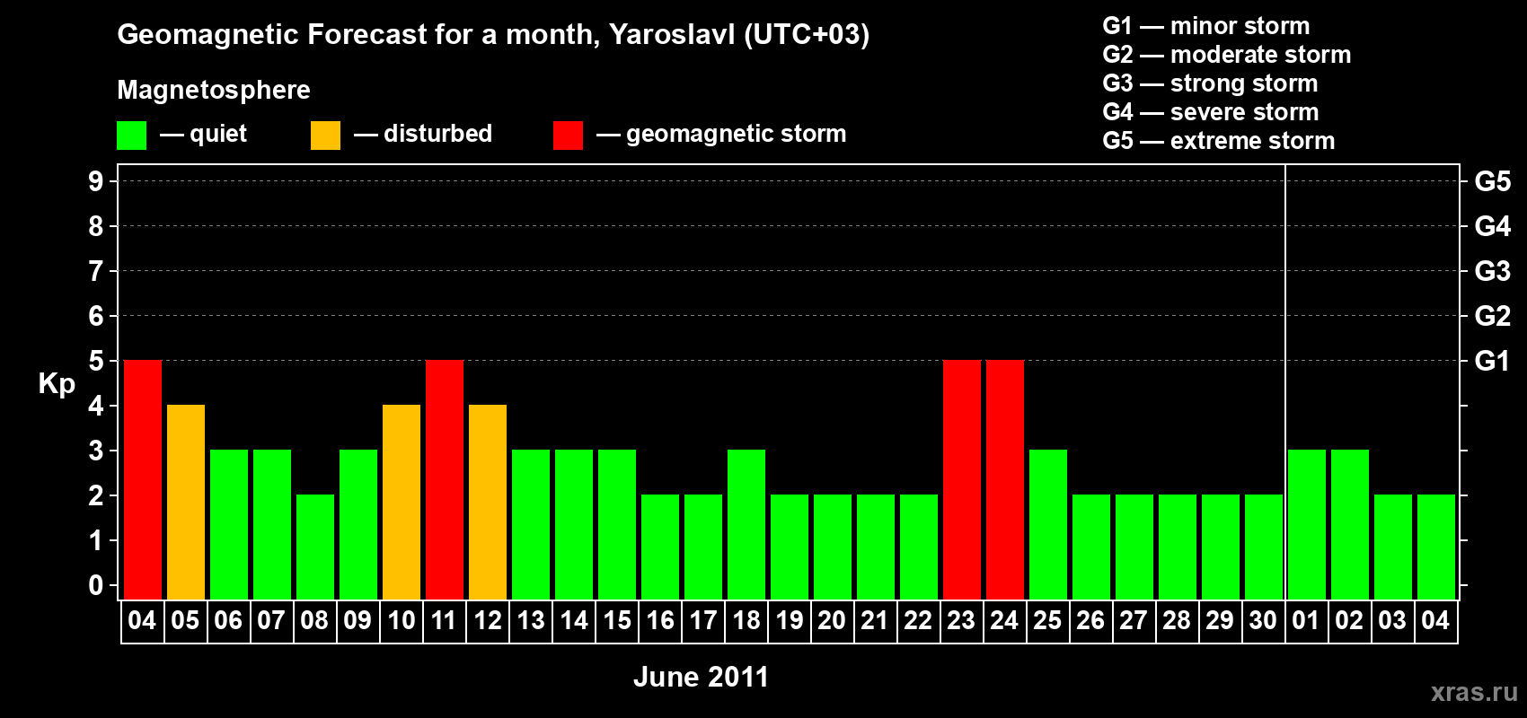 Geomagnetic storm forecast in Yaroslavl for Jun 04, 2011