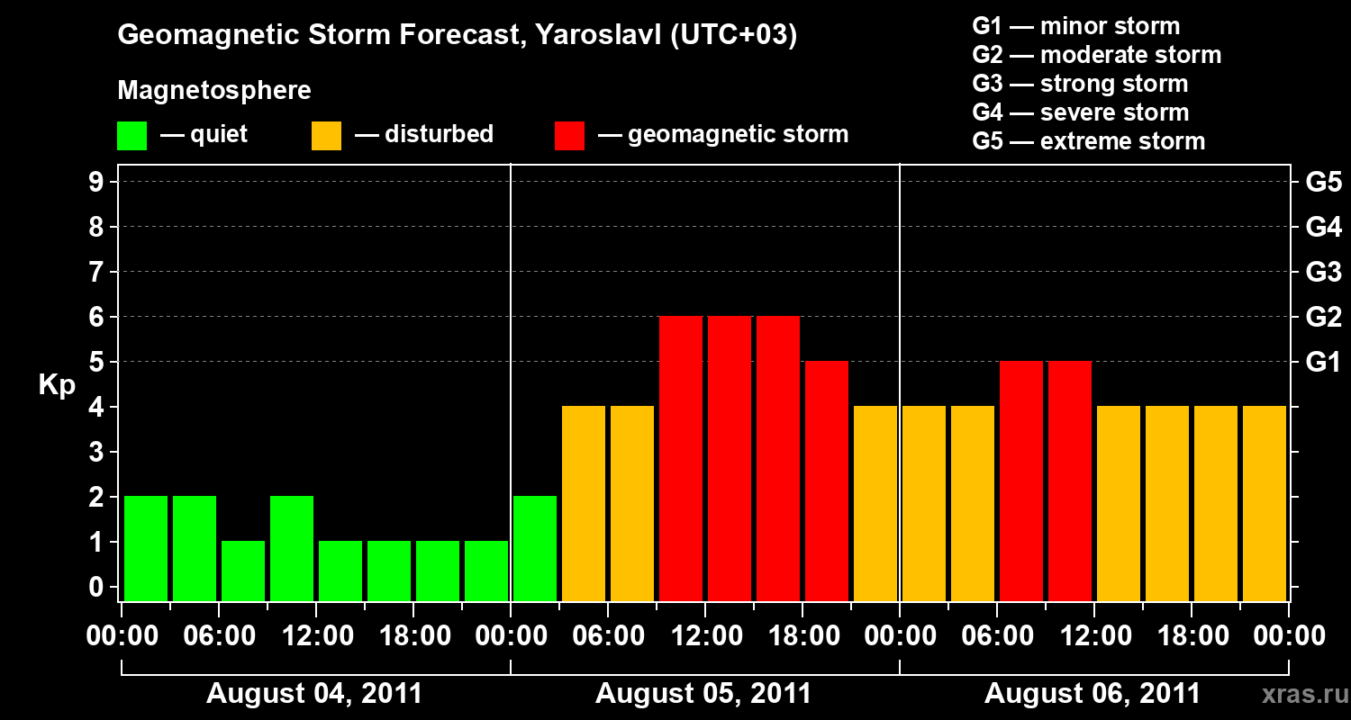 Geomagnetic storm forecast in Yaroslavl for Aug 04, 2011