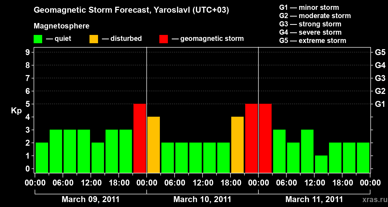 Geomagnetic storm forecast in Yaroslavl for Mar 09, 2011