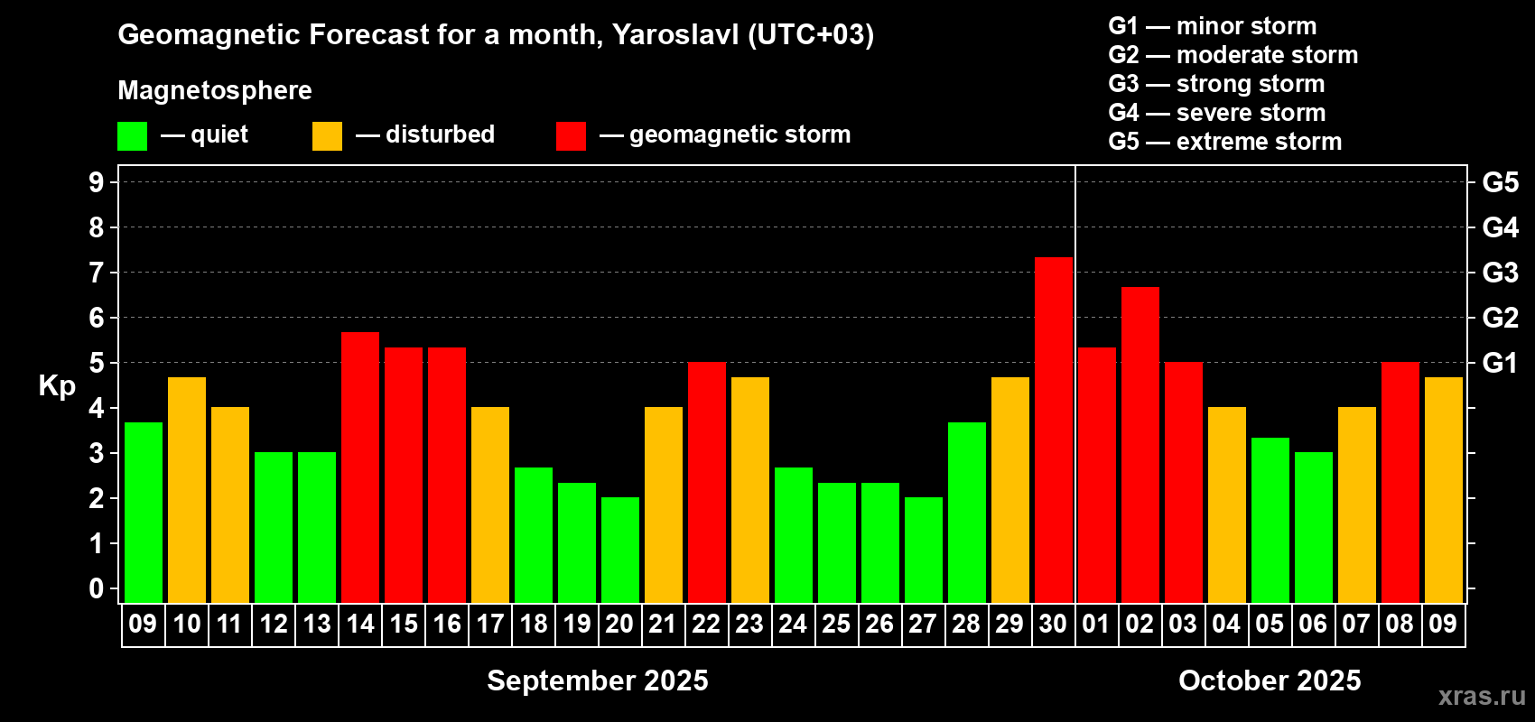 Geomagnetic storm forecast in Yaroslavl for Sep 09, 2025