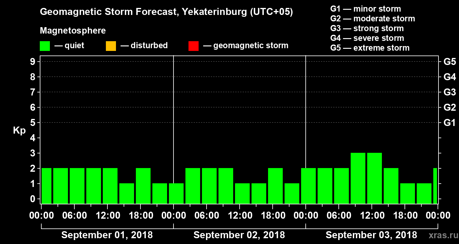 Geomagnetic storm forecast in Yekaterinburg for Sep 01, 2018