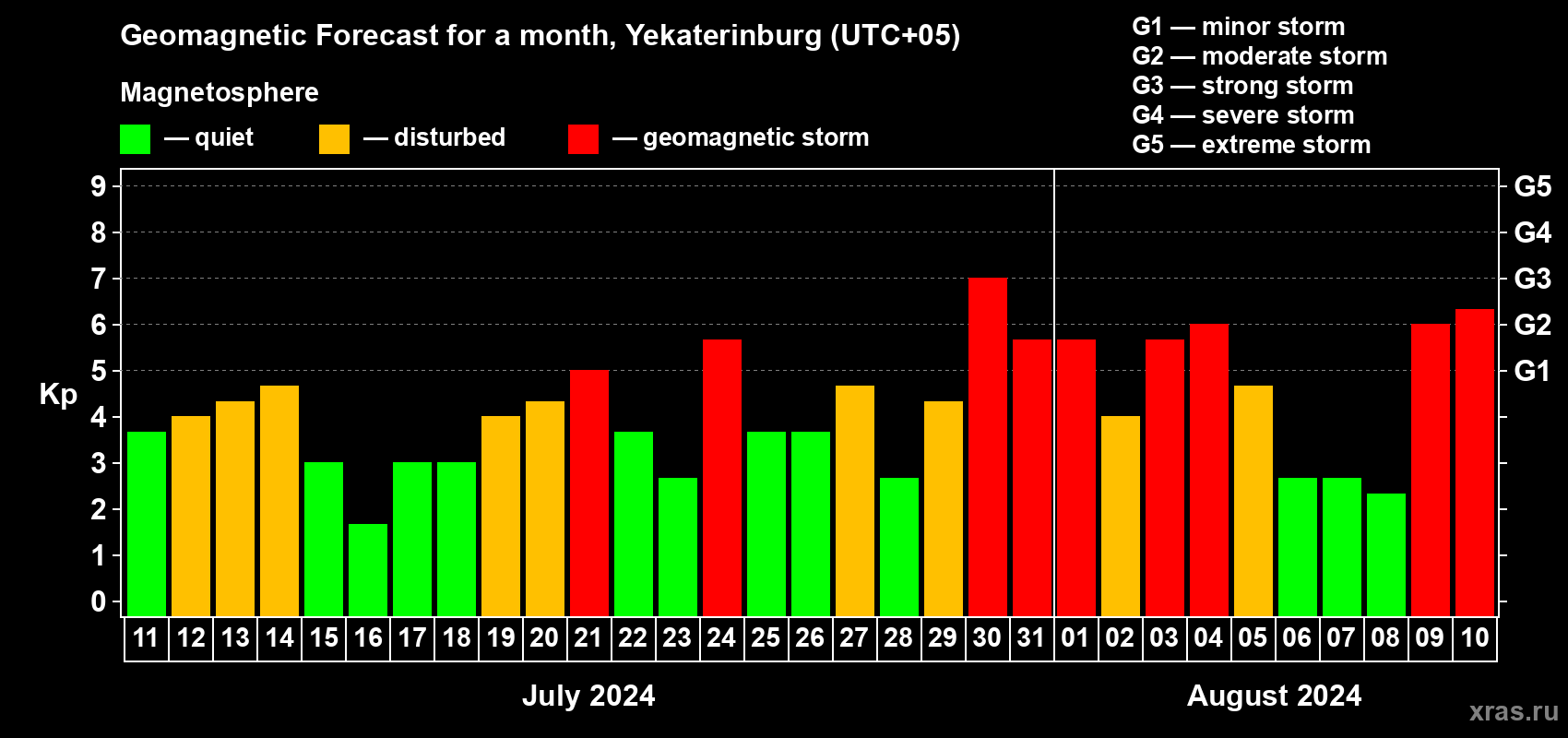 Geomagnetic storm forecast in Yekaterinburg for Jul 11, 2024