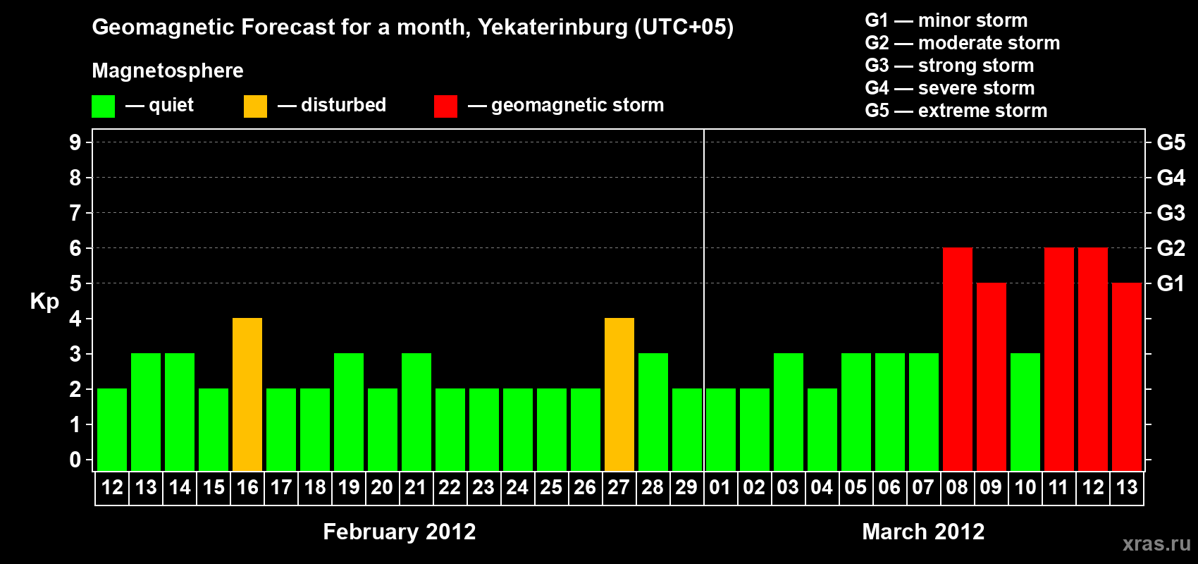 Geomagnetic storm forecast in Yekaterinburg for Feb 12, 2012