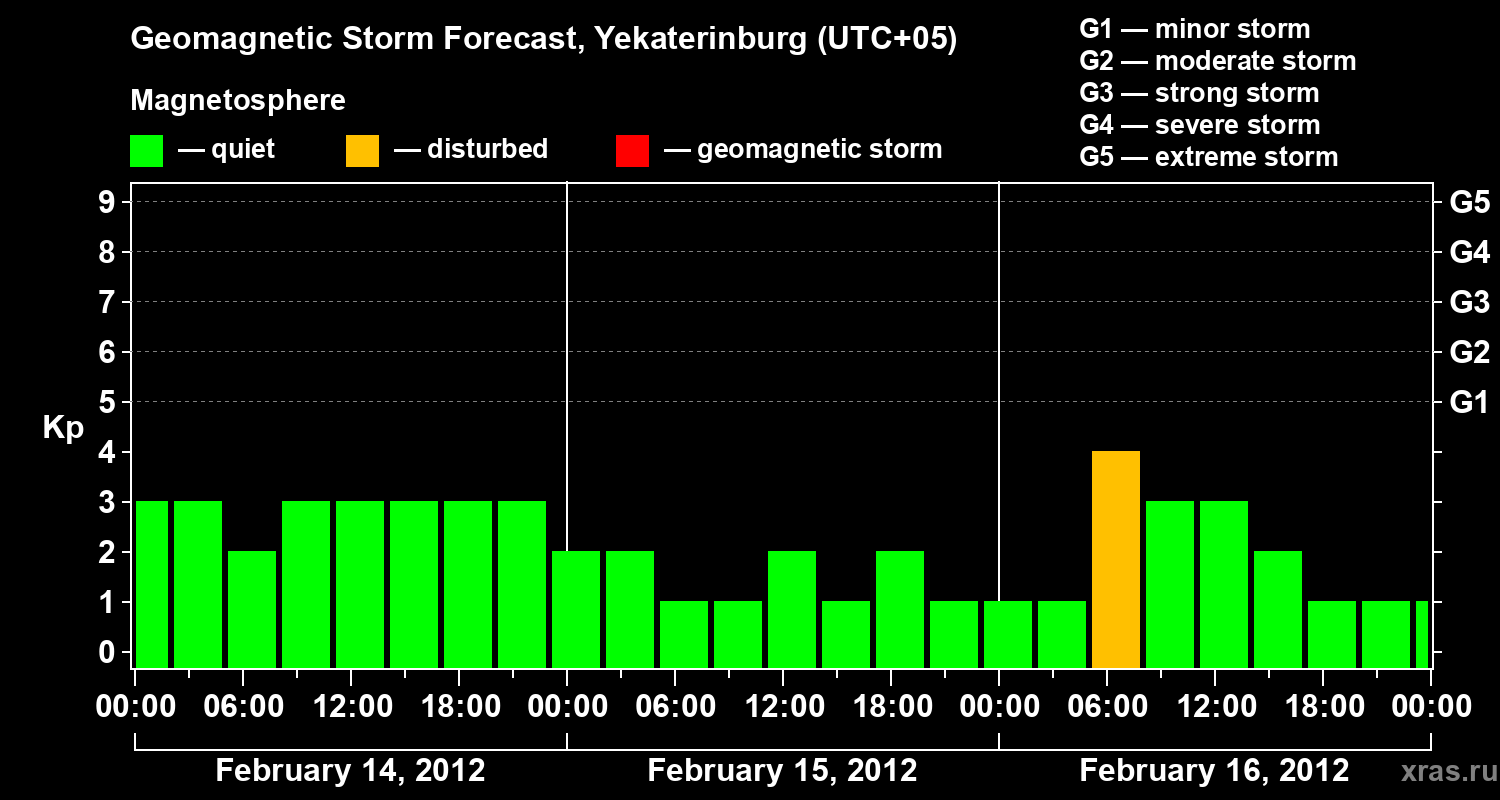 Geomagnetic storm forecast in Yekaterinburg for Feb 14, 2012