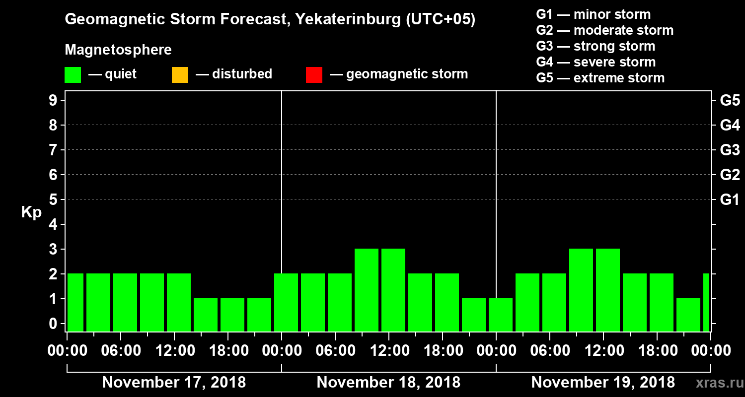Geomagnetic storm forecast in Yekaterinburg for Nov 17, 2018