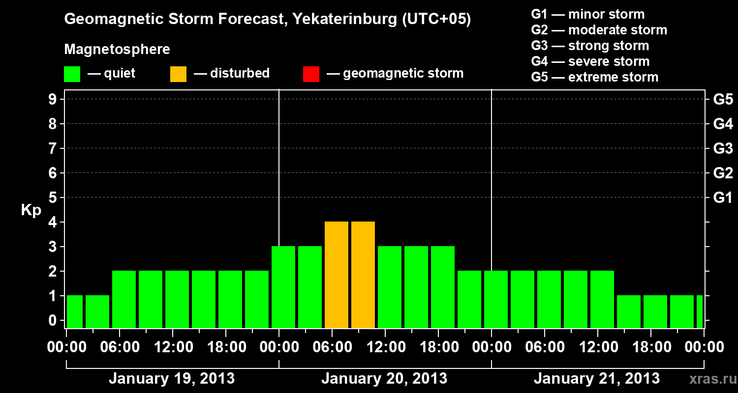 Geomagnetic storm forecast in Yekaterinburg for Jan 19, 2013