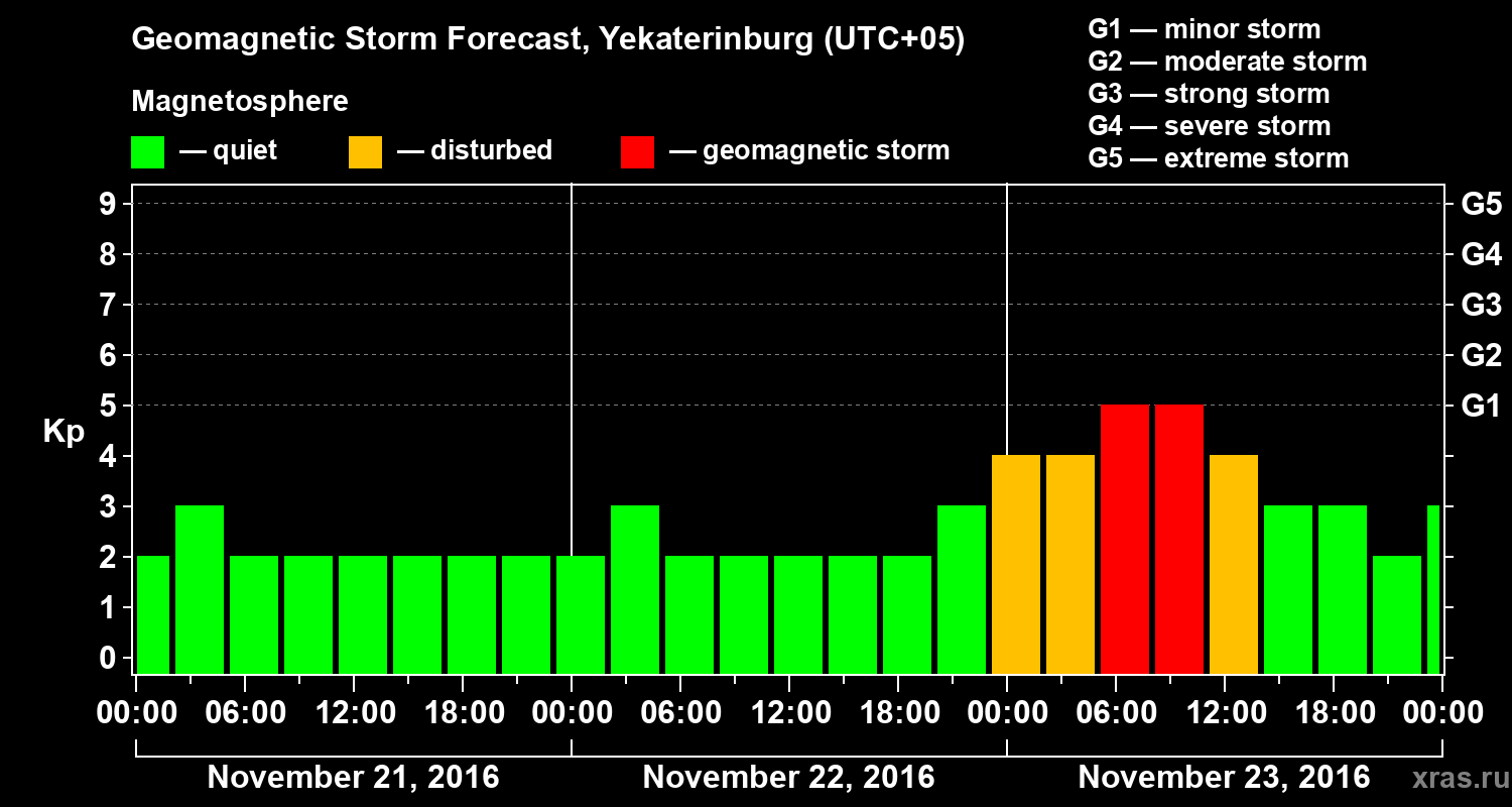 Geomagnetic storm forecast in Yekaterinburg for Nov 21, 2016