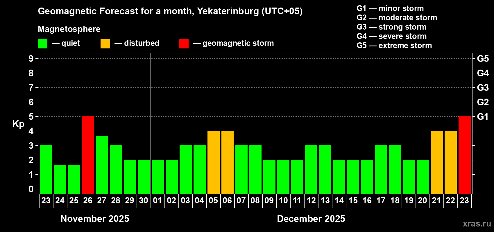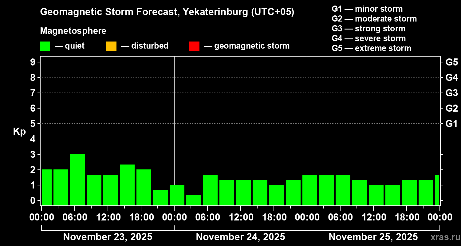 Geomagnetic storm forecast in Yekaterinburg for Nov 23, 2025