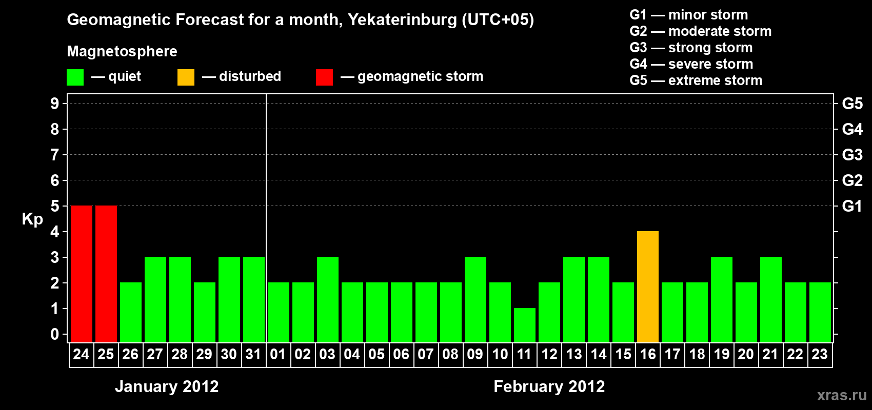 Geomagnetic storm forecast in Yekaterinburg for Jan 24, 2012