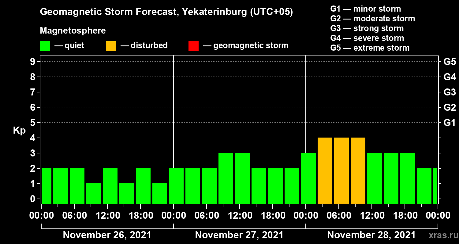 Geomagnetic activity forecast in Yekaterinburg — Nov 26, 2021