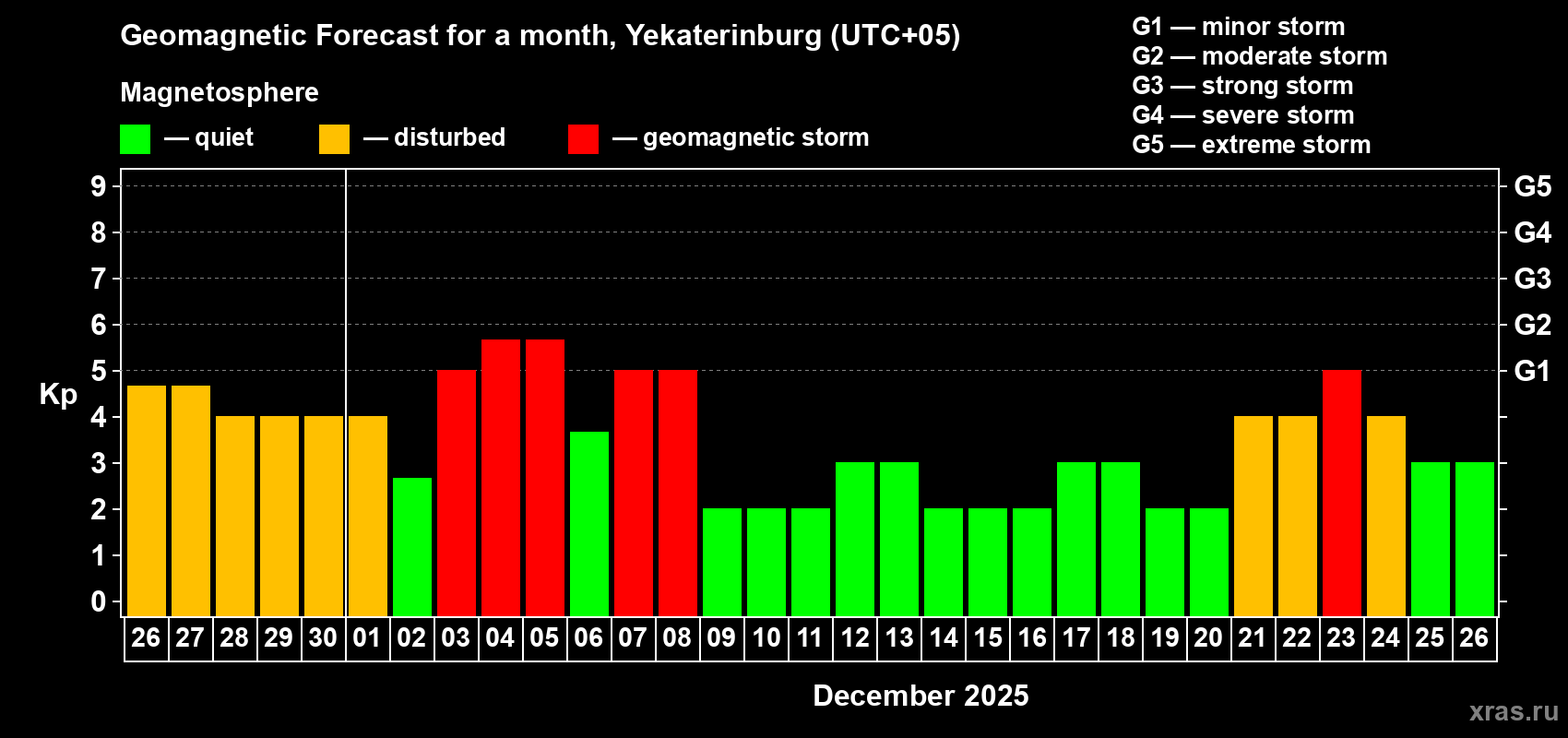 Geomagnetic storm forecast in Yekaterinburg for Nov 26, 2025