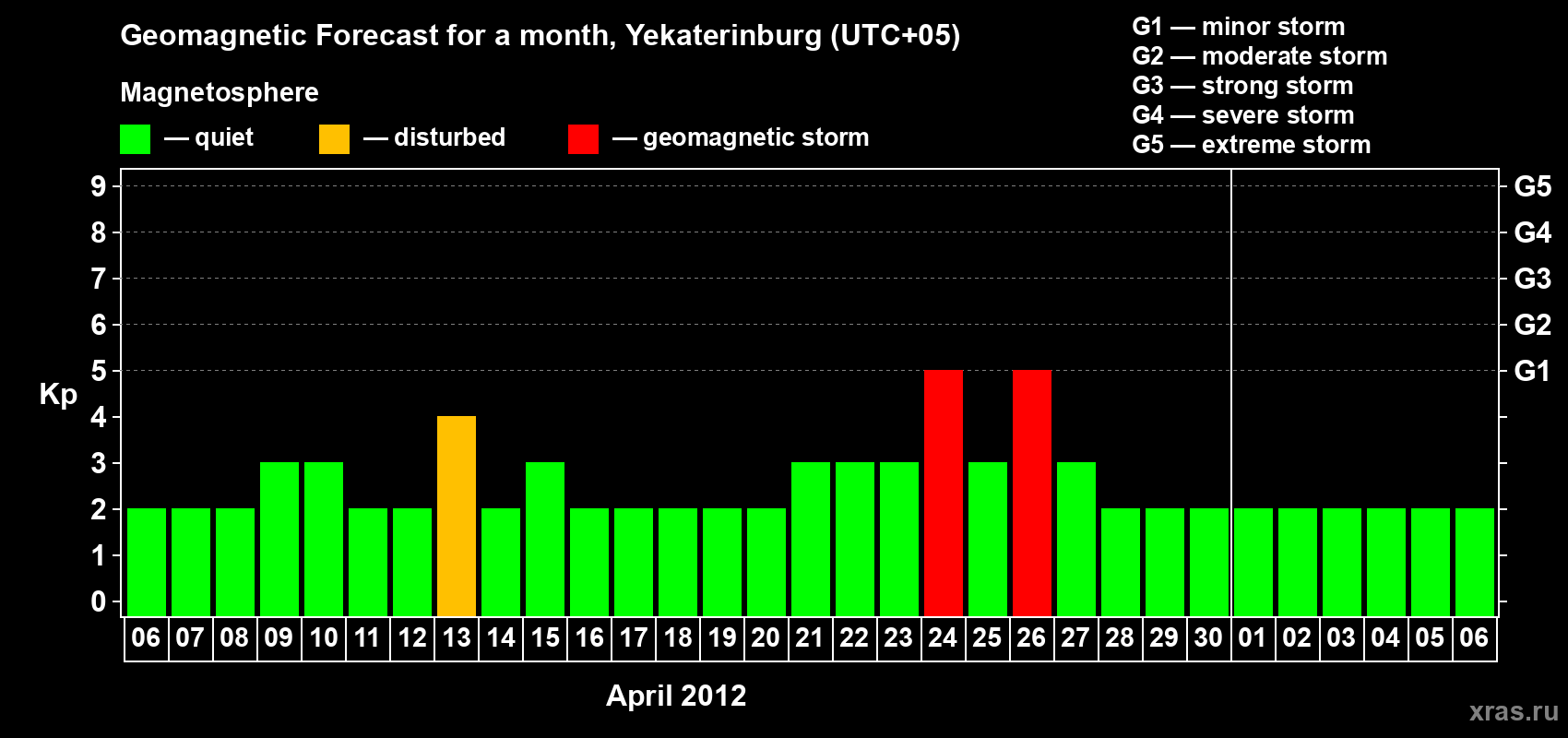 Geomagnetic storm forecast in Yekaterinburg for Apr 06, 2012