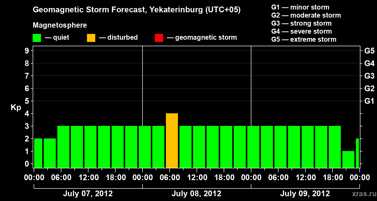 Geomagnetic storm forecast in Yekaterinburg for Jul 07, 2012