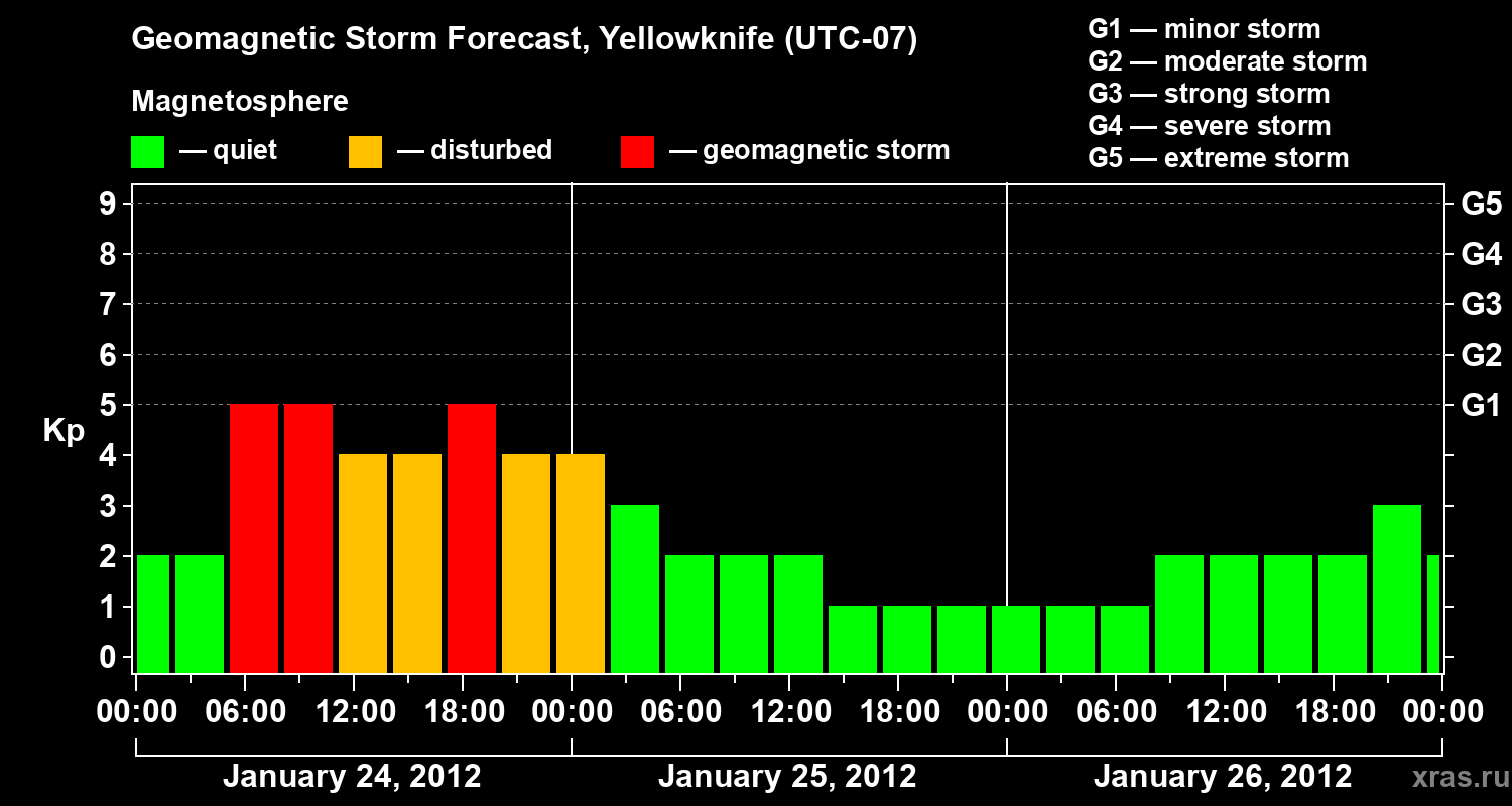 Geomagnetic activity forecast in Yellowknife — Jan 24, 2012