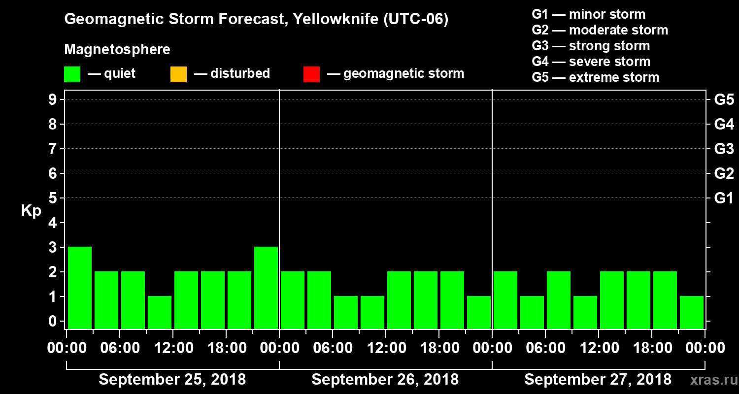 Geomagnetic storm forecast in Yellowknife for Sep 25, 2018