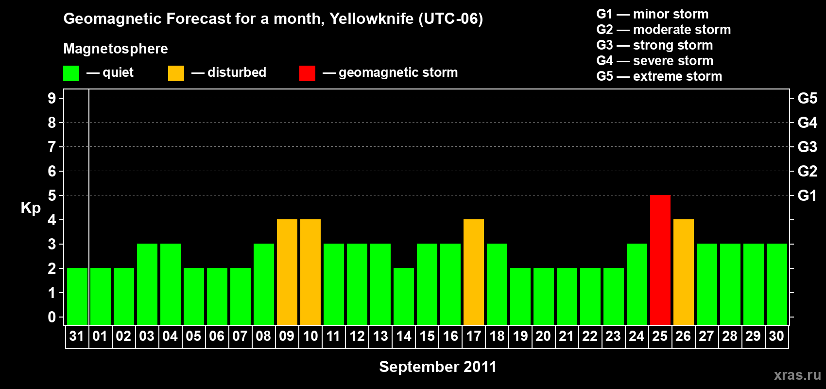 Geomagnetic storm forecast in Yellowknife for Aug 31, 2011