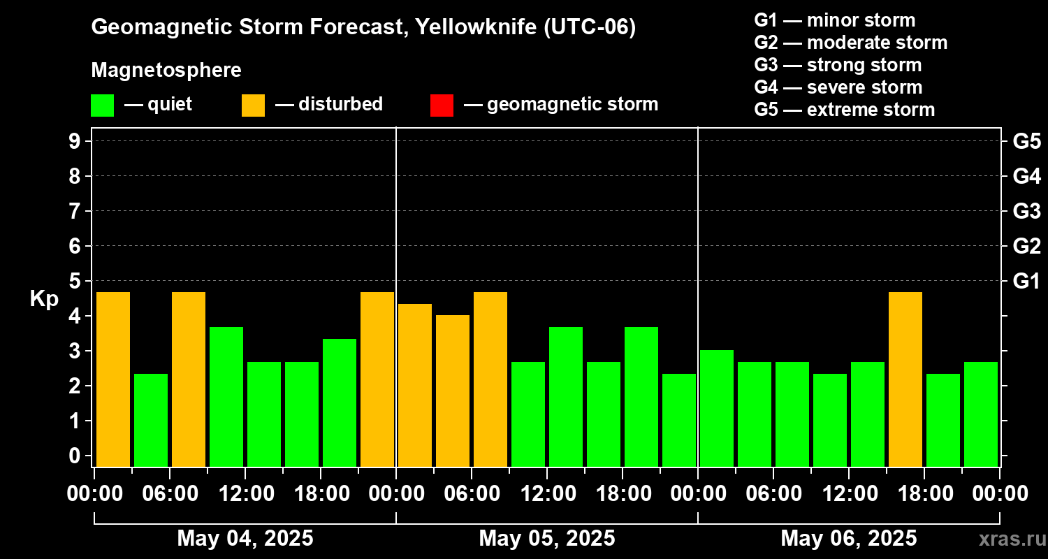 Geomagnetic storm forecast in Yellowknife for May 04, 2025