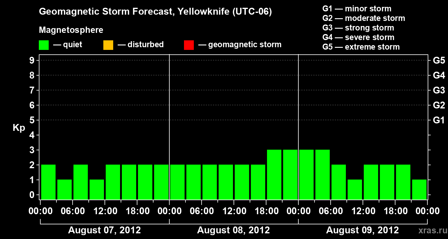 Geomagnetic storm forecast in Yellowknife for Aug 07, 2012