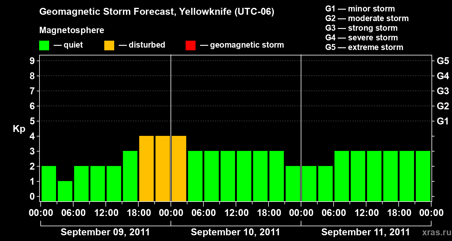 Geomagnetic storm forecast in Yellowknife for Sep 09, 2011