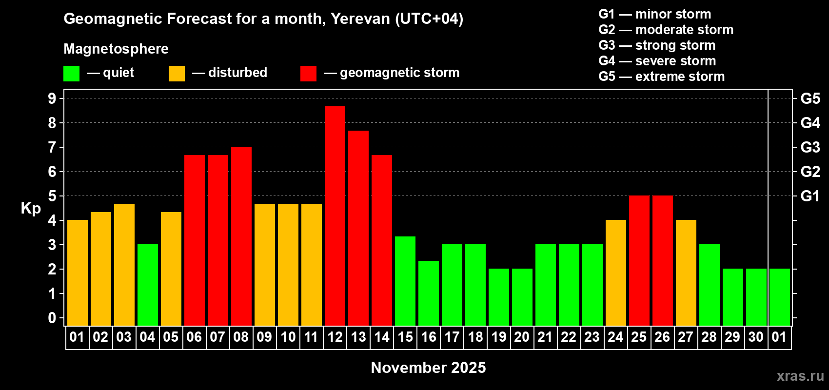 Geomagnetic storm forecast in Yerevan for Nov 01, 2025