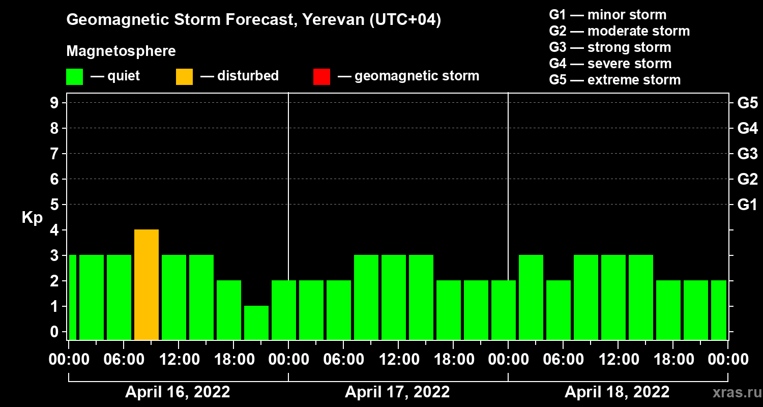 Geomagnetic storm forecast in Yerevan for Apr 16, 2022