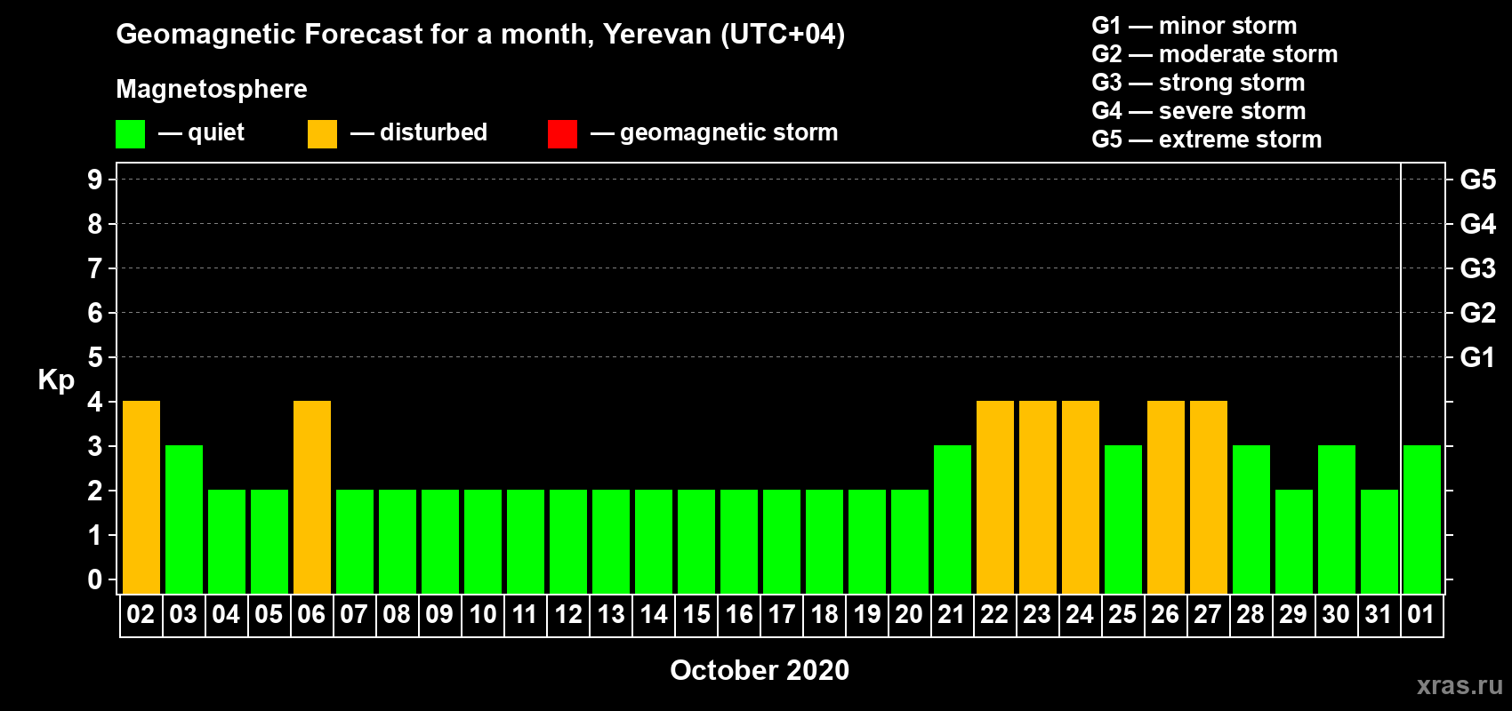 Geomagnetic activity forecast in Yerevan — Oct 02, 2020