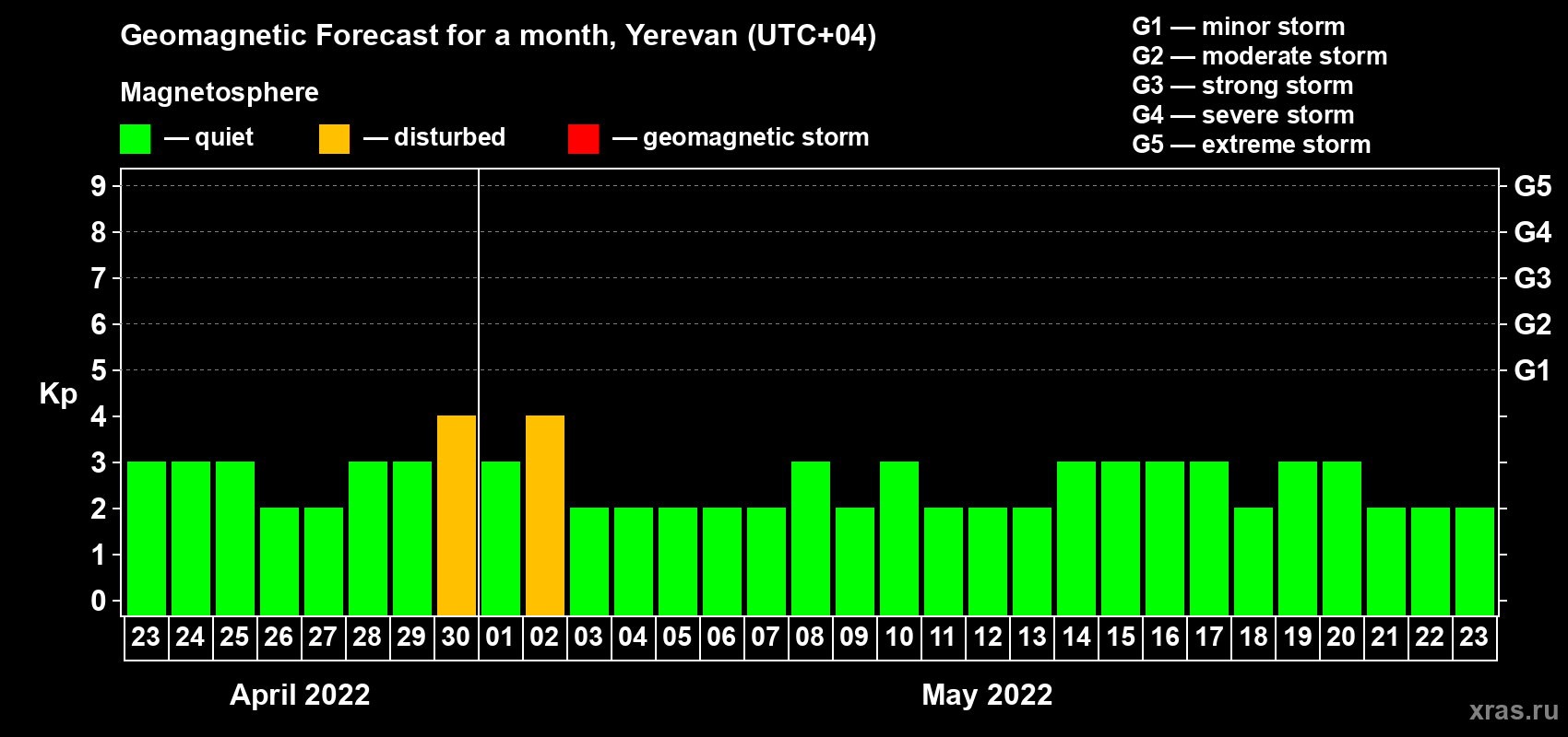 Geomagnetic activity forecast in Yerevan — Apr 23, 2022
