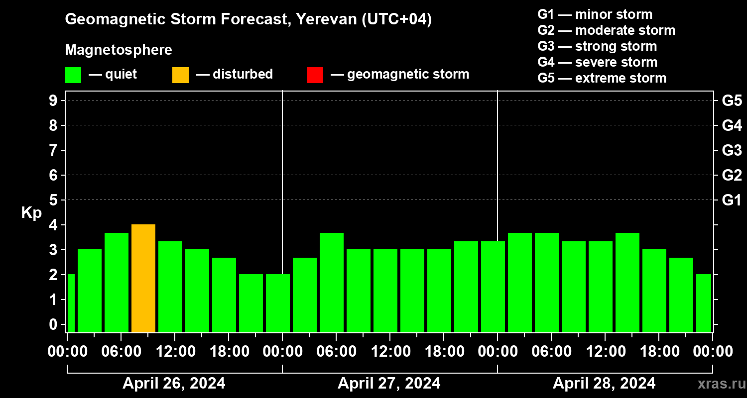 Geomagnetic storm forecast in Yerevan for Apr 26, 2024