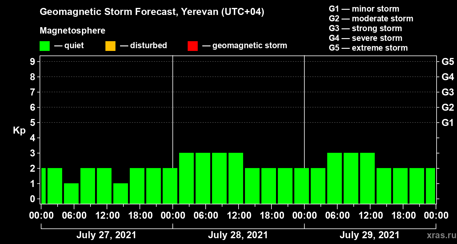 Geomagnetic storm forecast in Yerevan for Jul 27, 2021