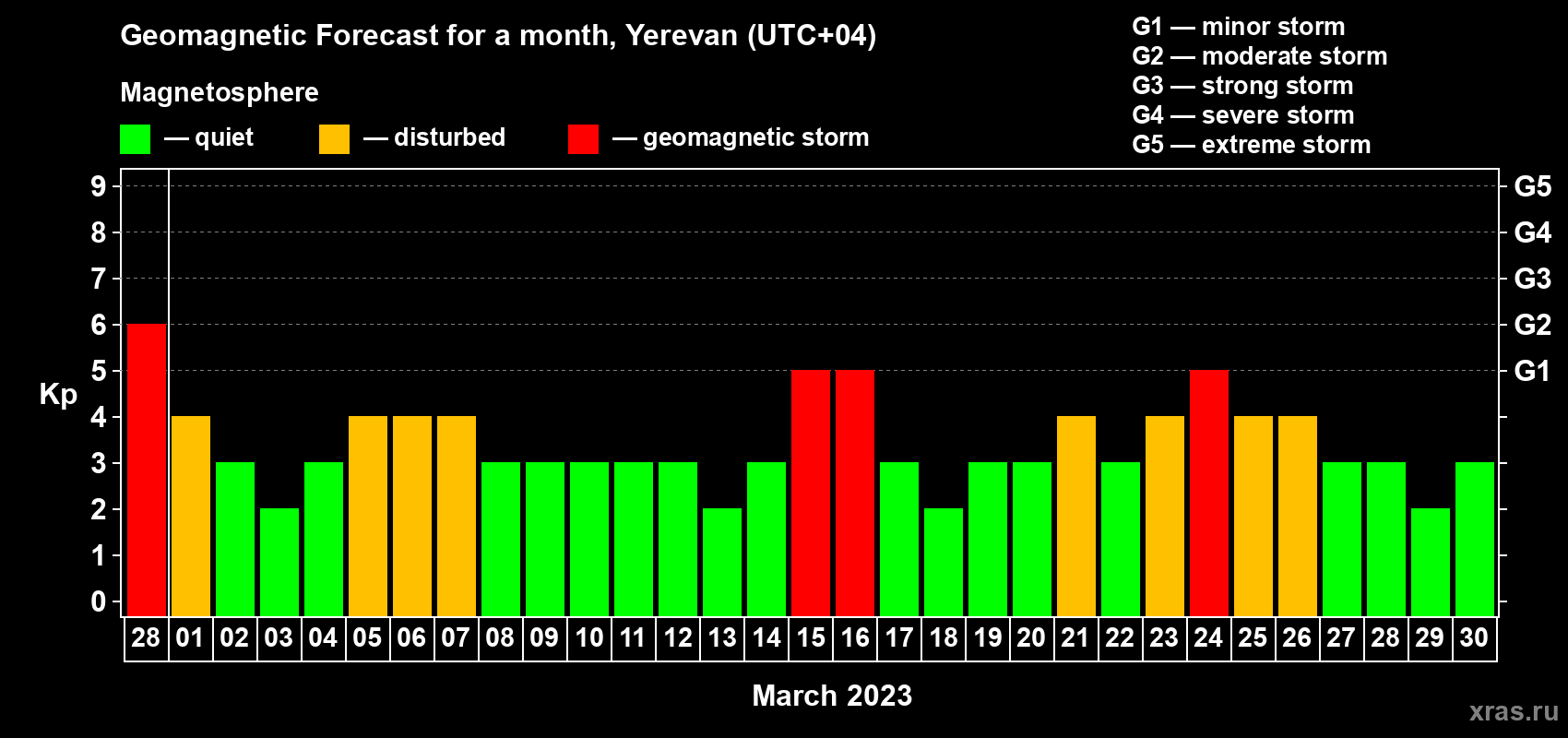 Geomagnetic storm forecast in Yerevan for Feb 28, 2023