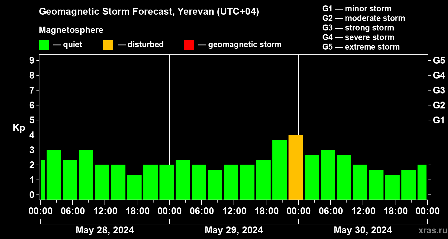 Geomagnetic activity forecast in Yerevan — May 28, 2024