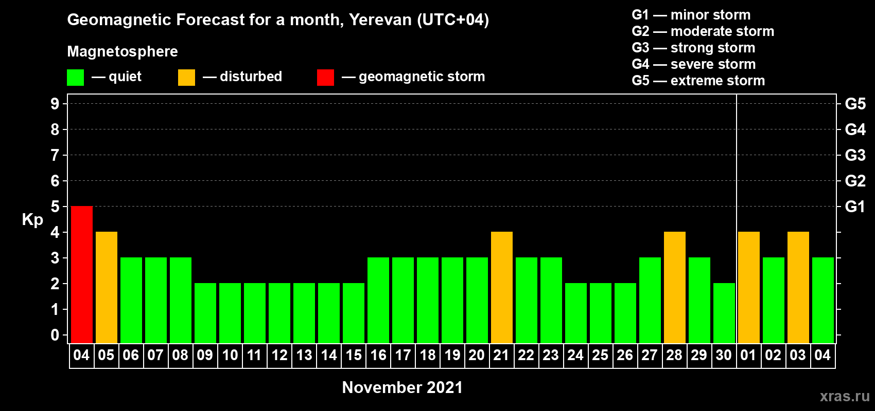 Geomagnetic storm forecast in Yerevan for Nov 04, 2021